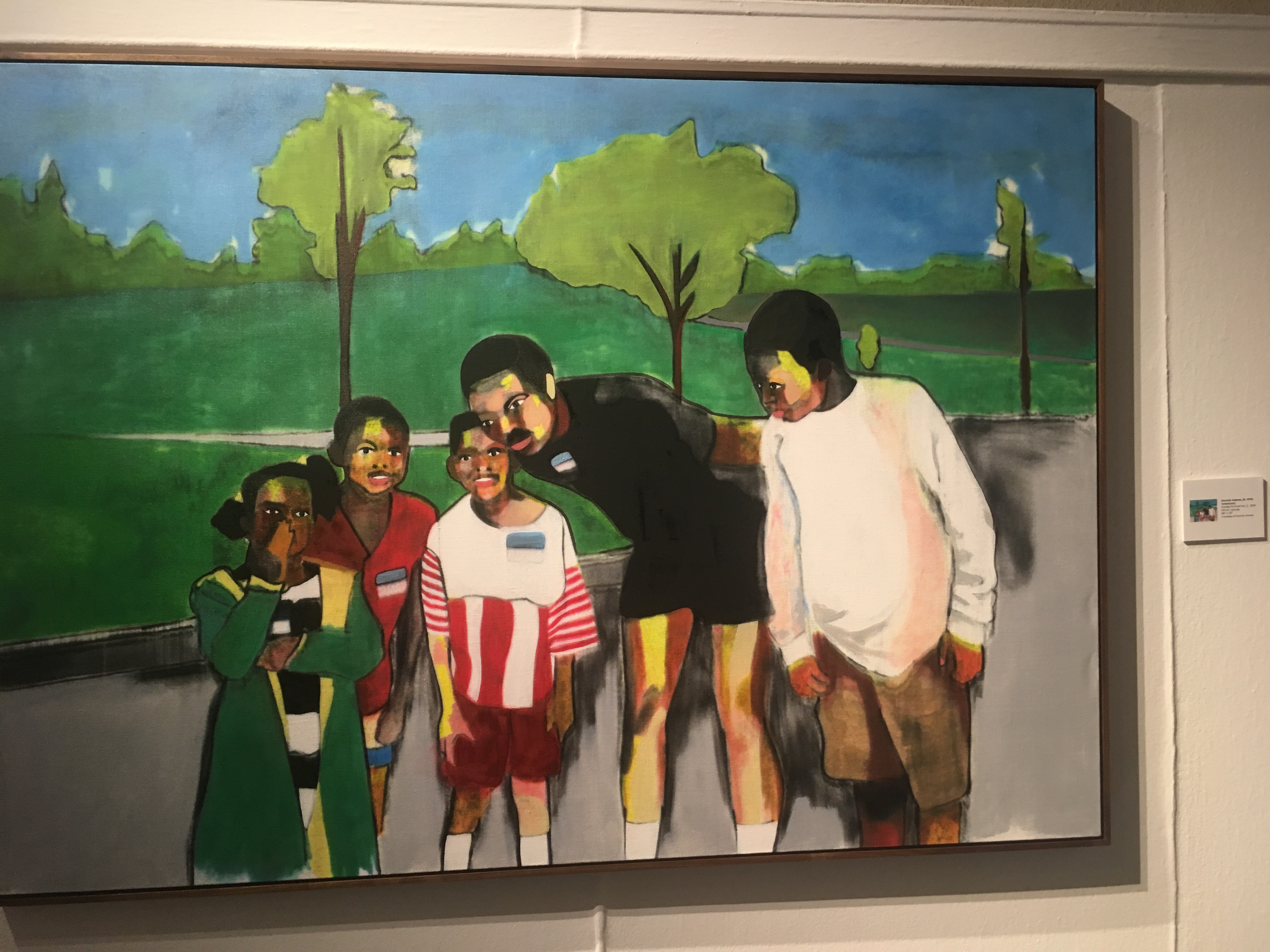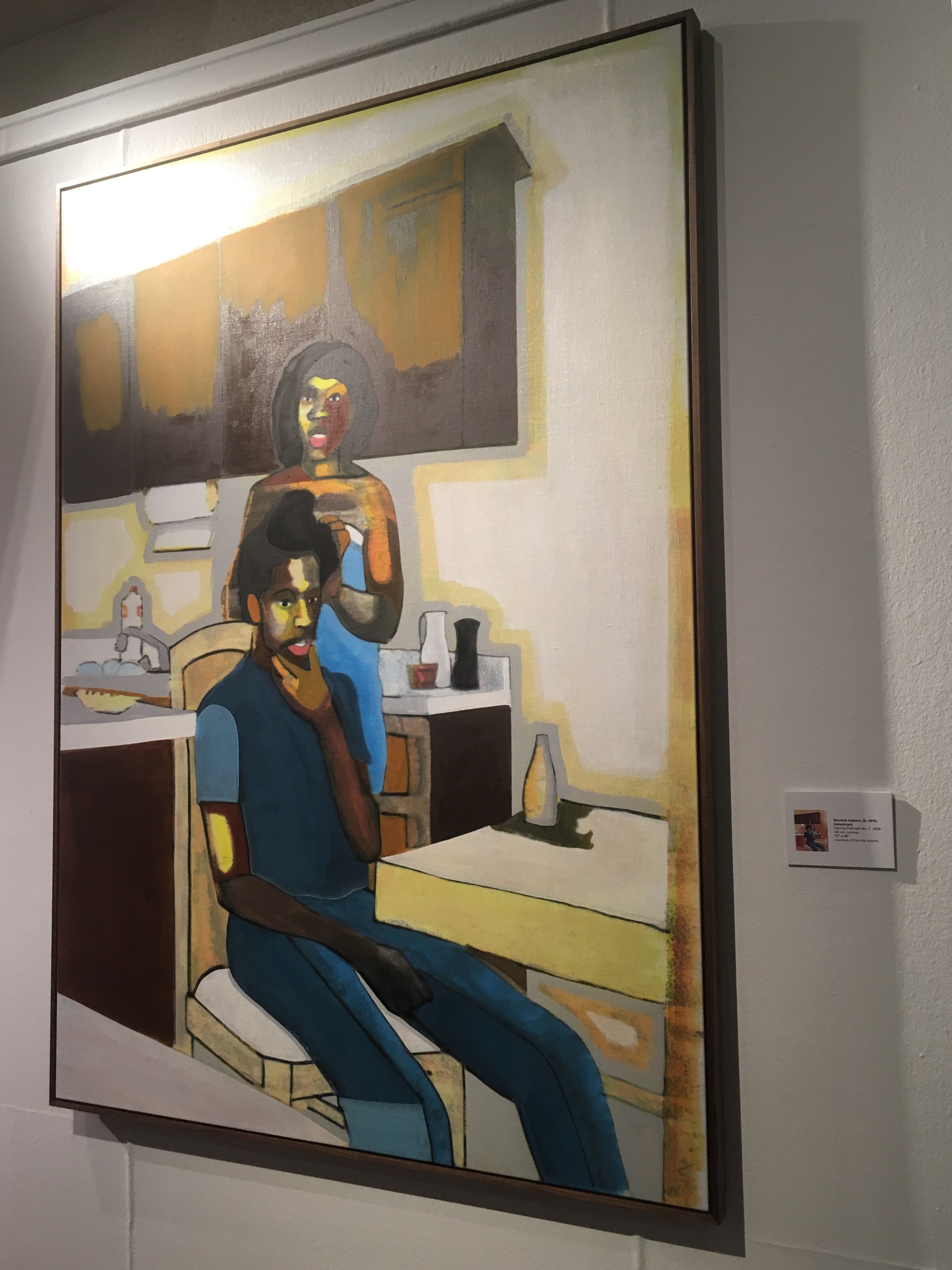 Hey friends! I had the chance to go to the opening of Baltimorean Derrick Adams’ show entitled “Where I’m From,” on display at Baltimore City Hall. A lot of his work is centered around his Black identity and culture. These large scale oil paintings are photos from his own family albums, and pay homage to close familial ties in Black culture. He abstracts the forms into blocks of color, really drawing the viewer to examine the figure, their body language, and the importance of an archival of Black family life in fine art.
