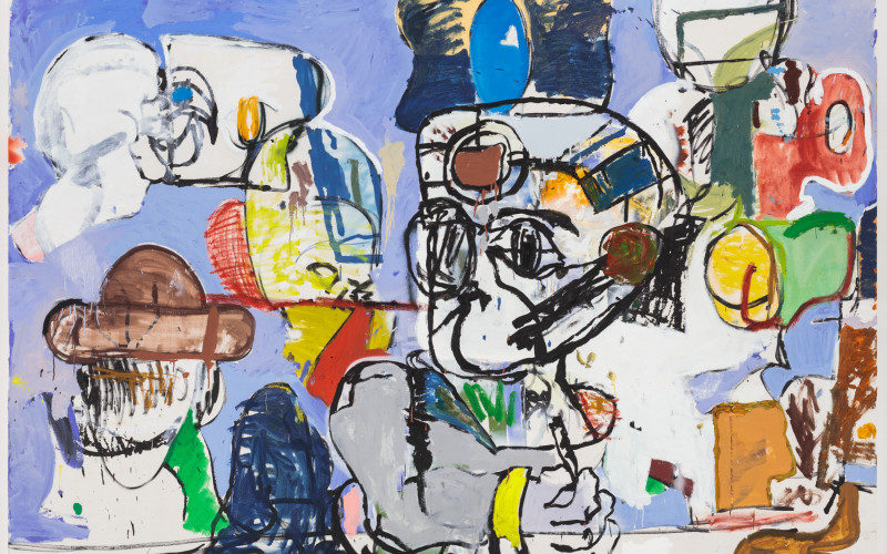 Running with the theme of painters inspired by graffiti, next we have Eddie Martinez. He is a self-taught American artist of Puerto Rican ancestry working in New York. Many of his teenage years were spent making graffiti, and his paintings on canvas reflect that rough, expressionistic lines and bold colors seen in street art and drawings. I like his art because his modality of mark making directly reinforces his intention.