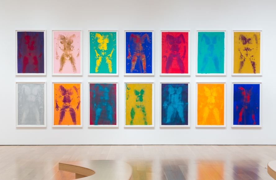 Keltie Ferris is an American artist working in New York by combing her love of Impressionism, abstract painting, Pop art, and graffiti into huge paintings produced through intensive layering. In her latest process, she presses her oil-covered body against the canvas surface, and then brushes or sprays color onto it. Supposedly this processes is hailed as a juxtaposition of simultaneous concealing and exposing, but to me it just seems odd and a kitche way of exploring body’s role in art.