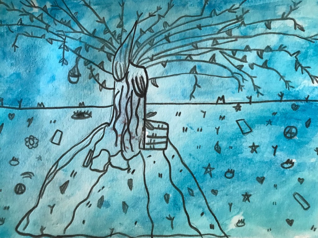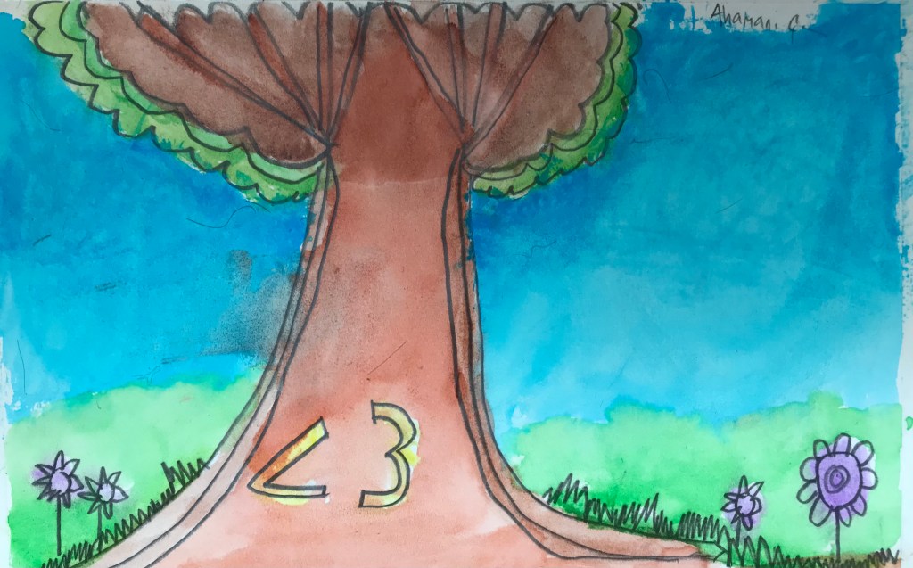 The watercolor project was a lot of fun – I taught middle schoolers how to use different techniques like wet-on-wet, flat wash, graded wash, etc. and they created art around the theme of connection and nature! Once we individually mastered the watercolor techniques, all the students collaborate on a fall watercolor tree with each leaf 🍁 representing a different value. That final artwork will be shown in the BWI showcase this Spring!