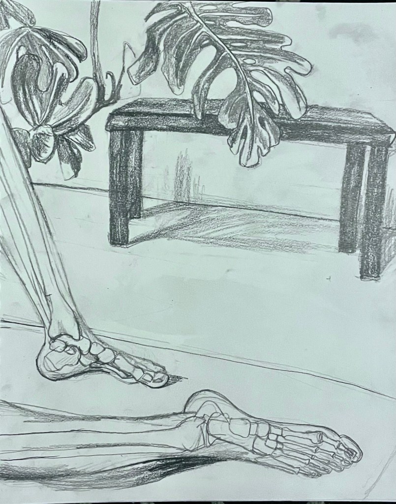 I’m learning a lot about life drawing and human anatomy. Some of the main concepts I am exploring in my work are: