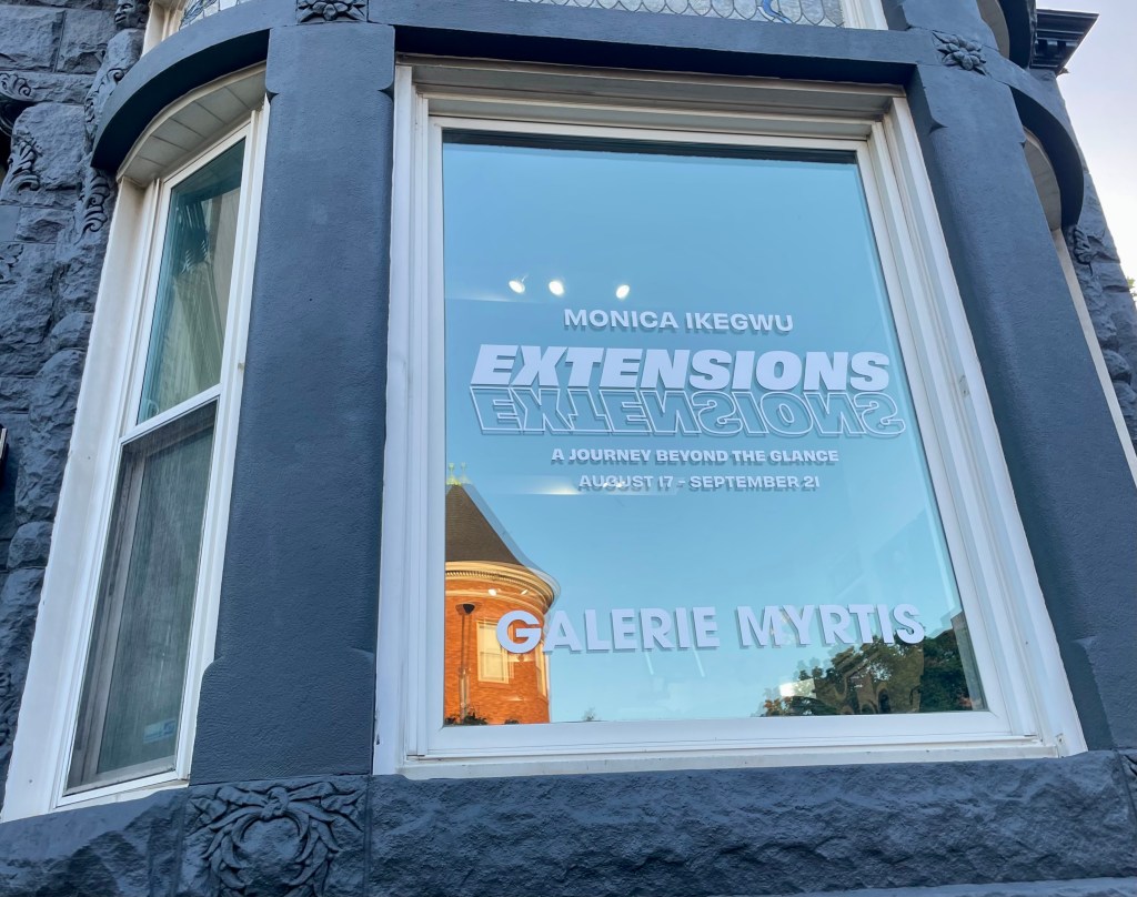 Just down the street where Chappell and I live is Monica Ikegwu‘s show “Extensions” opening at Galarie Myrtis. This show is still on view so you can see it until September 21st! They are also offering a few events to chat with the local Baltimore artist, so definitely check out their website.